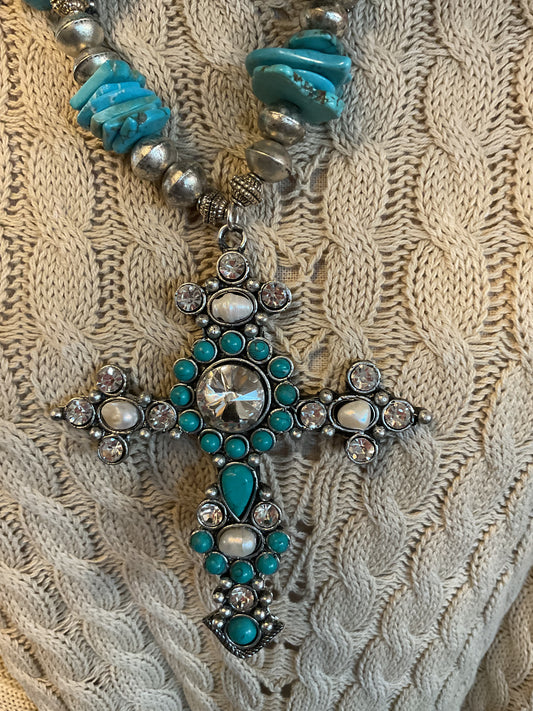 Turq Guitar & Bling Necklace