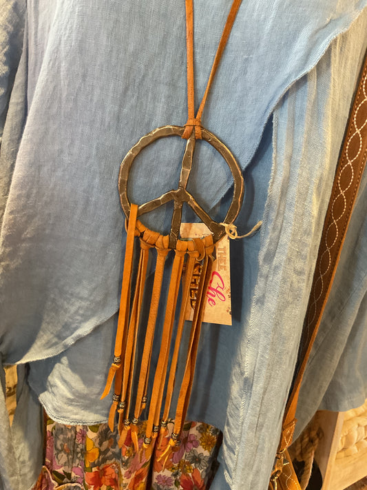 Peace Out Brown Fringe Necklace