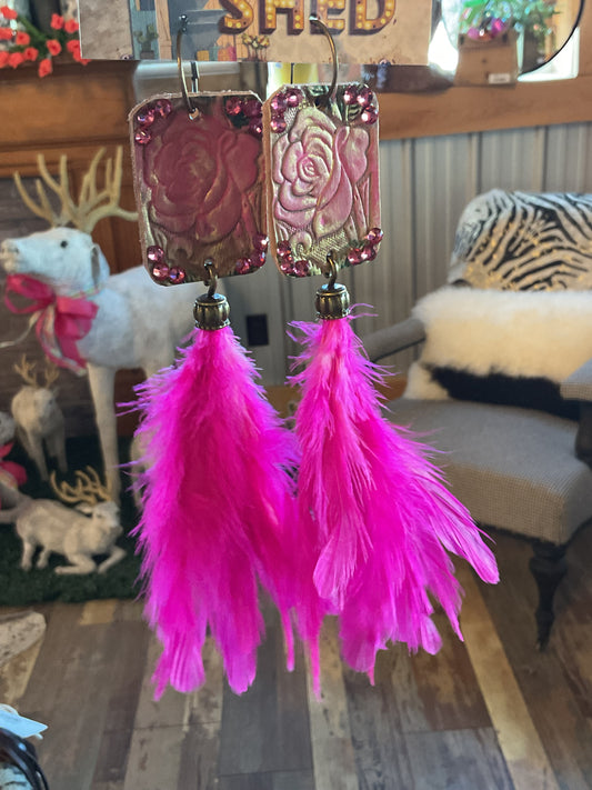 Rose & Pink Feather Earring