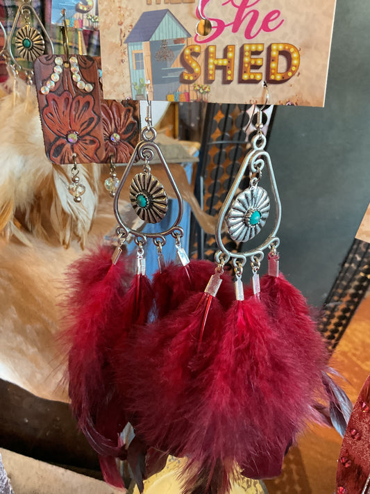 Red Feather Concho Earring