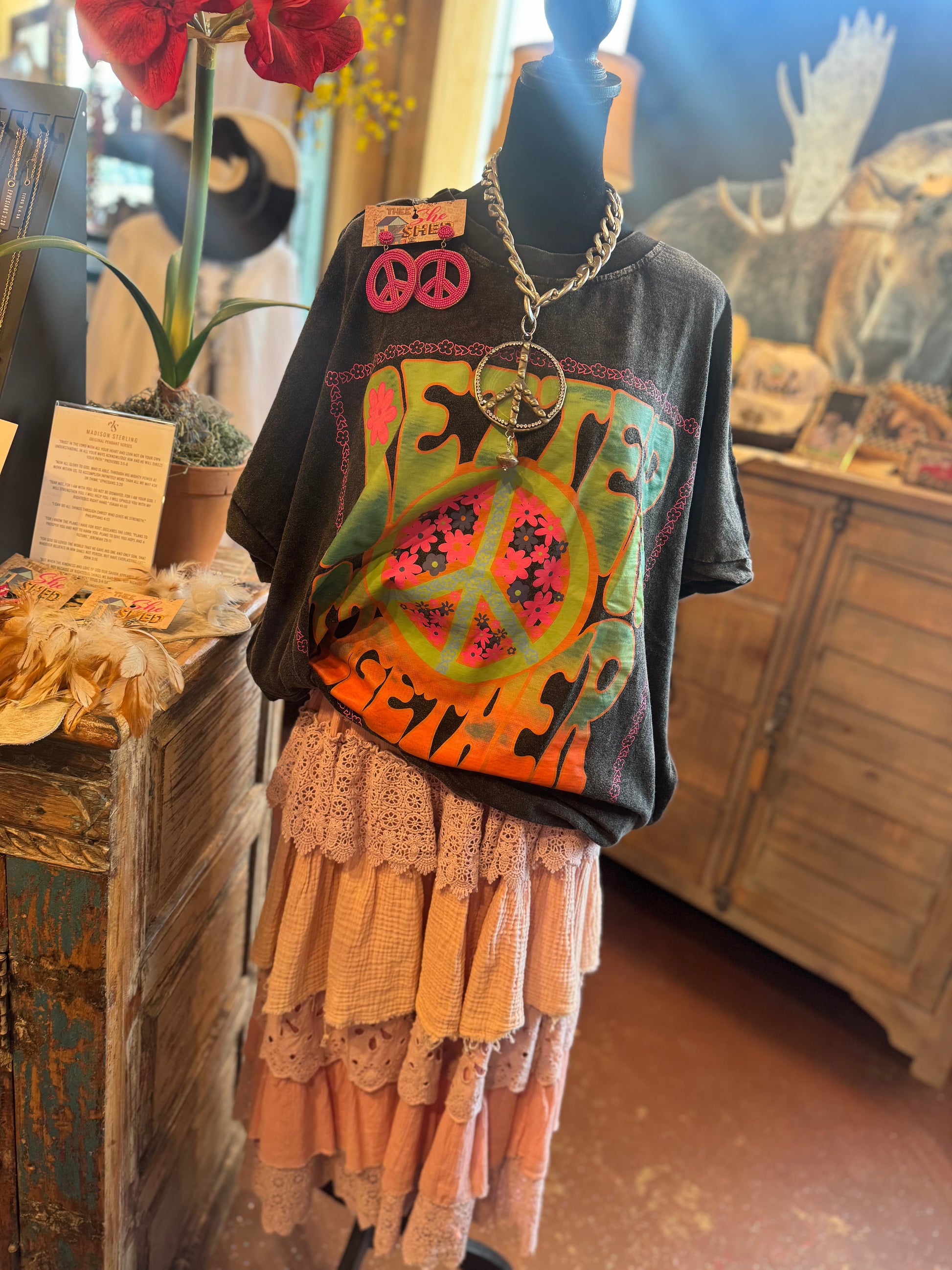 Who doesn't love a cute, fun over sized tee! This "Better Together" Peace tee has all the fun colors to make that outfit POP!! Also has pockets! Pair it with some cute jewelry and you're all set!